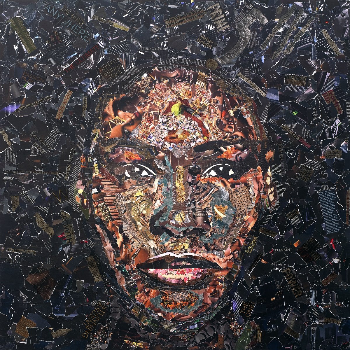 He takes recycled magazines, selecting and cutting thousands of pieces and quotes by hand, and transforms them into stunning portraits of extraordinary people. His work is inspired by individuals who stand out and excel in society, especially in sports and popular culture.