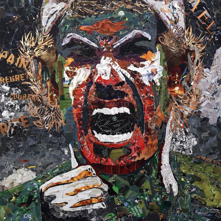 He takes recycled magazines, selecting and cutting thousands of pieces and quotes by hand, and transforms them into stunning portraits of extraordinary people. His work is inspired by individuals who stand out and excel in society, especially in sports and popular culture.